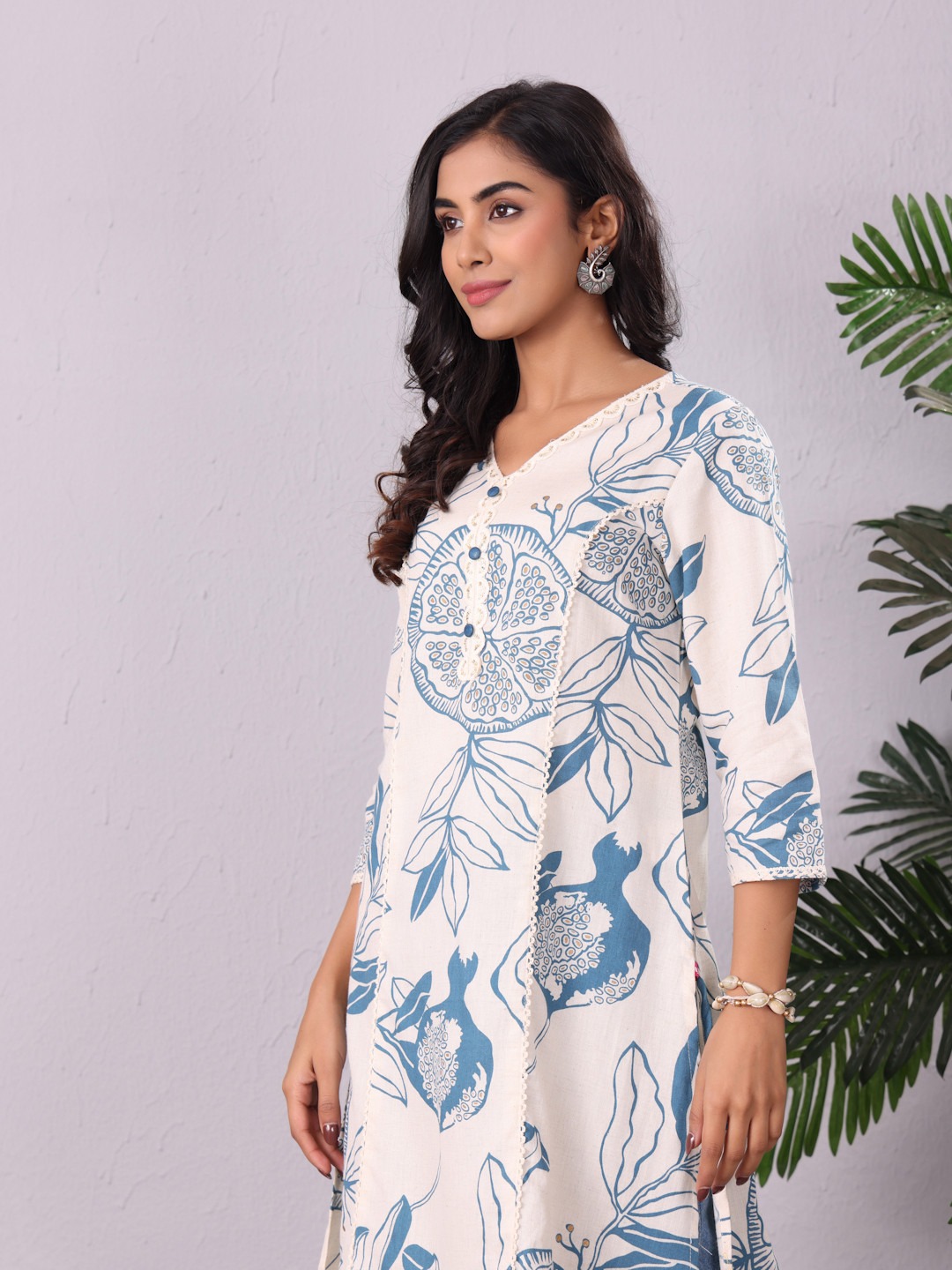 Elevate your everyday style with this Rayon Gold Printed Straight Kurti. Crafted from soft, flowy rayon fabric, it features elegant gold prints, delicate lace detailing, and a convenient side pocket. Designed with a straight silhouette and 3/4 sleeves, this 43-inch kurti offers both comfort and effortless sophistication—perfect for daily wear or casual outings.
