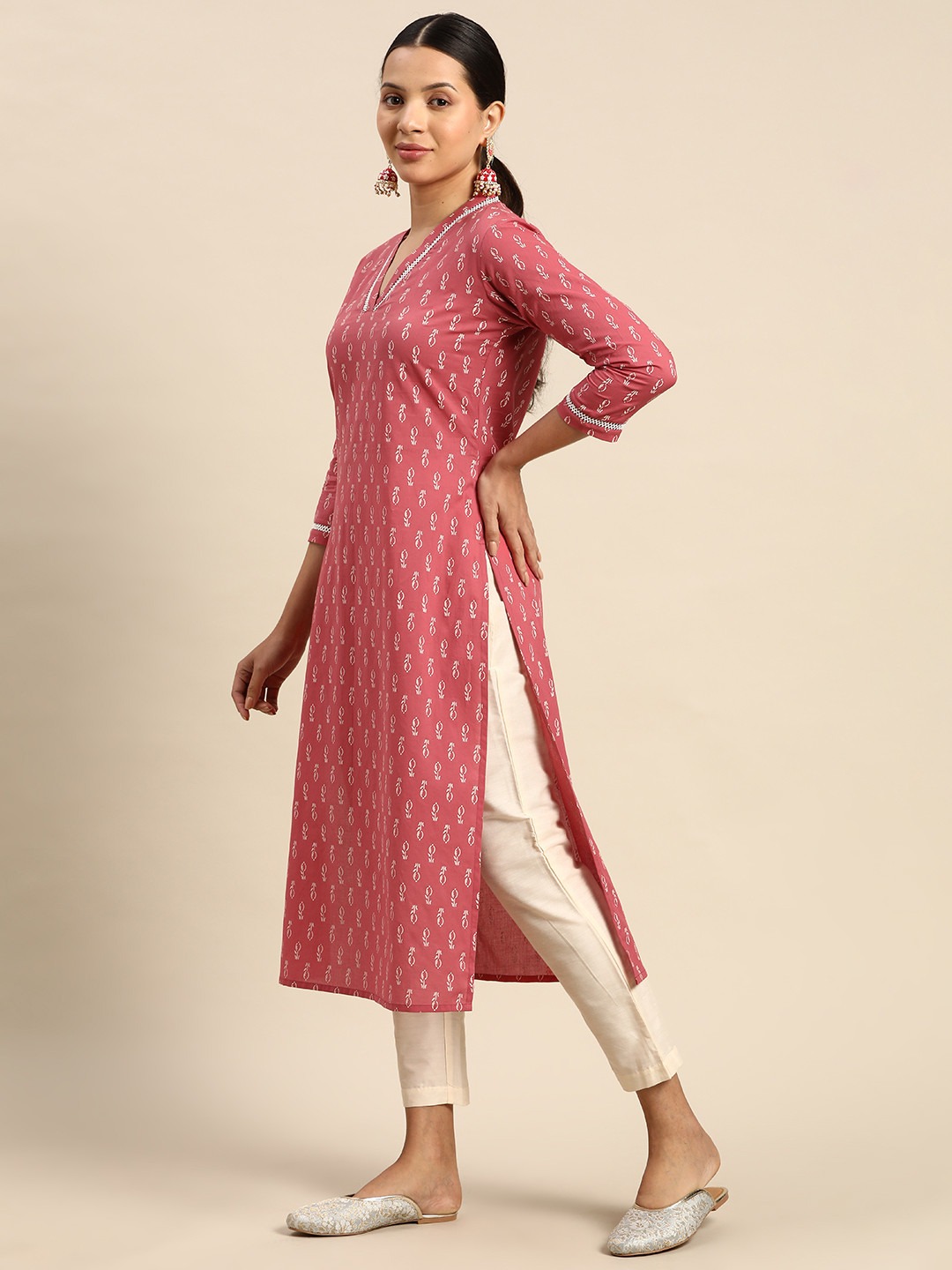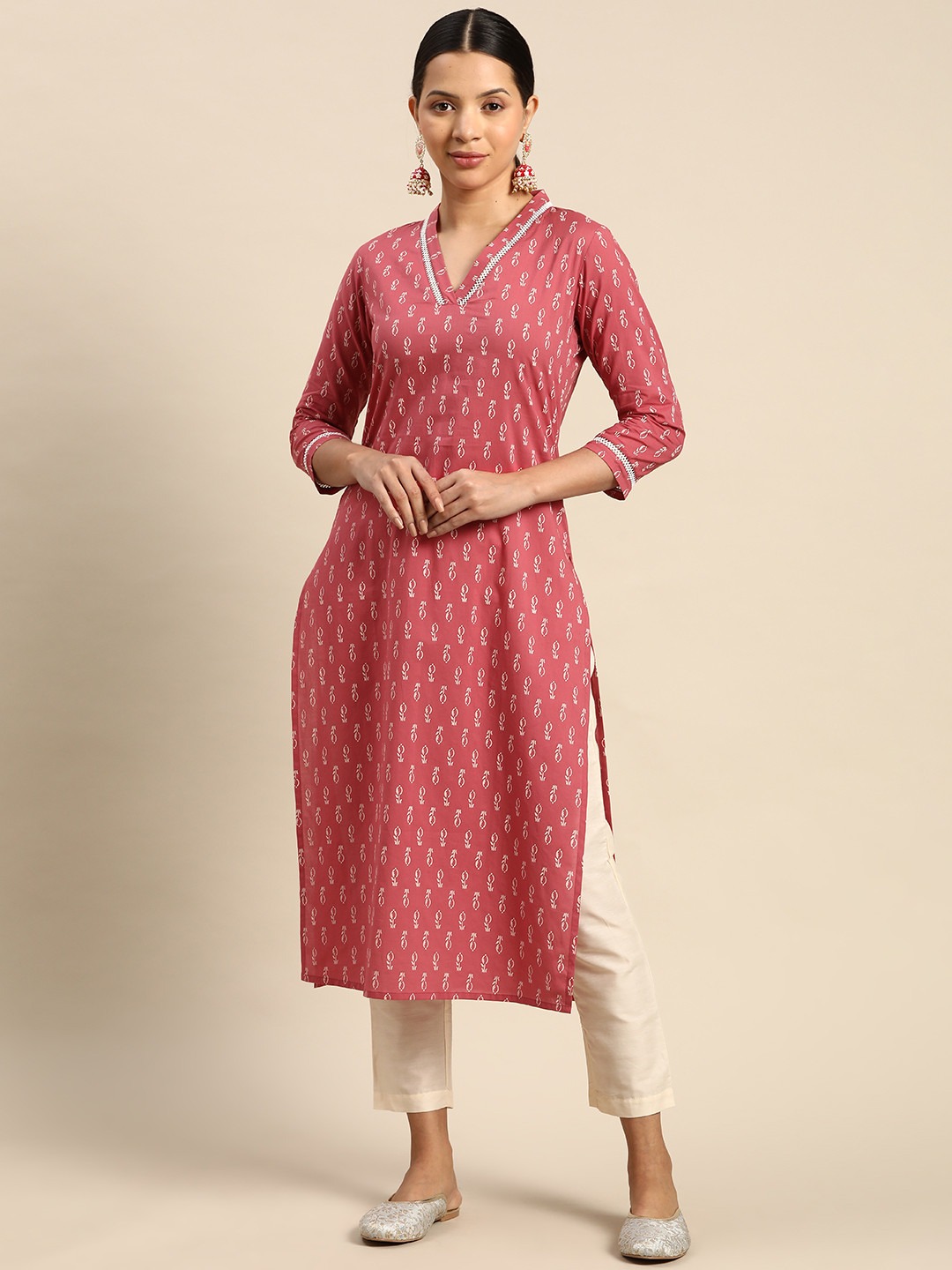 The straight-cut pattern gives a clean and modern look, while the subtle printed design adds a touch of grace. Enhanced with delicate lace work, this kurti brings a refined finish that makes it suitable for both casual outings and semi-formal settings.